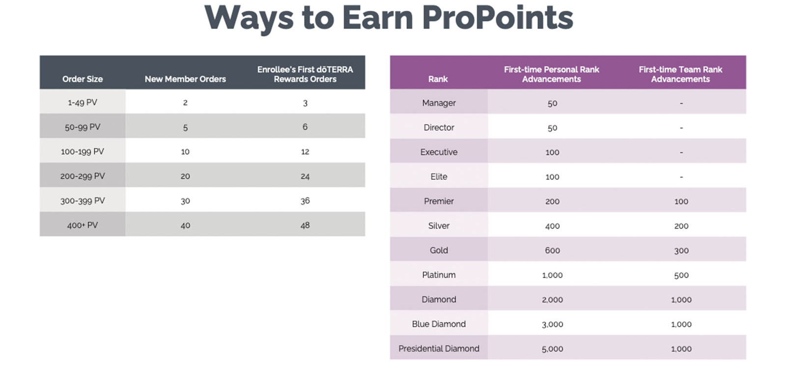 Se obtienen ProPoints ya sea que tu inscrito personal se registre en Recompensas doTERRA inmediatamente después de inscribirse o meses más adelante.